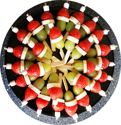 Schuimpjes Kerstmis Kerstfruit Sneeuwpop van ei Kerstman van aardbeien Kerstkransjes Kerstpudding Caramels Oudejaars hapjes Oliebollen Spaghetti worstjes Worstenbroodje