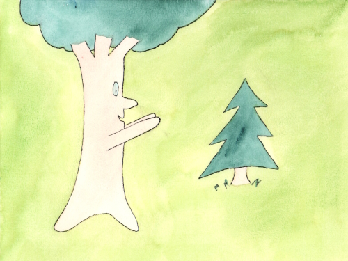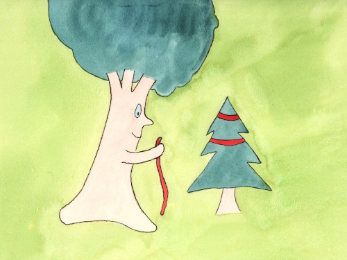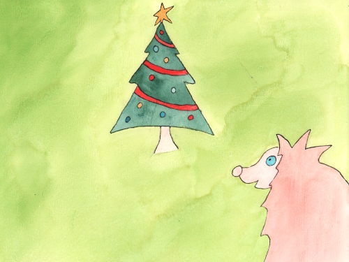 Het was bijna Kerstmis en Wimpie ging op zoek naar een kerstboom. Daar stond er een!