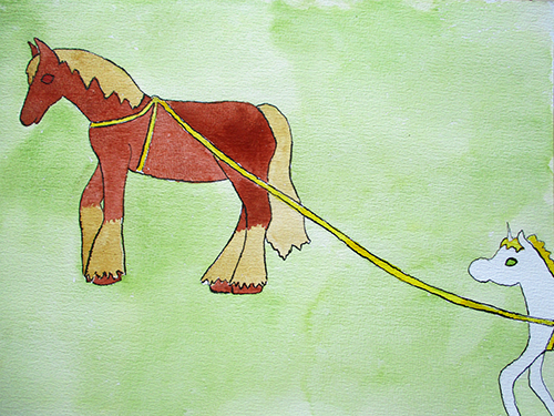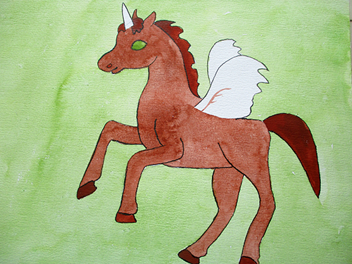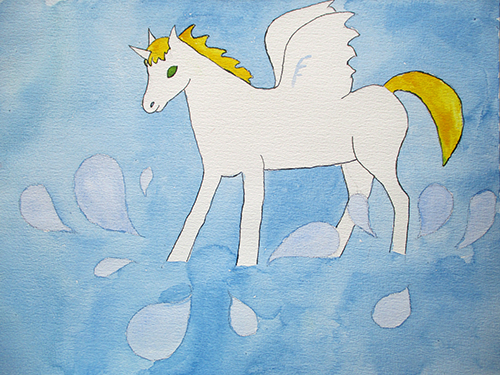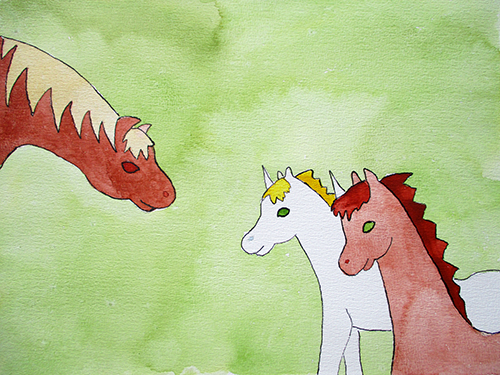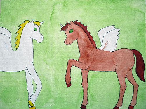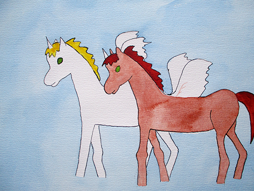 Pegasus en Unicorn waren heel gelukkig samen, en kregen twee mooie veulens: Aatje en Beetje.