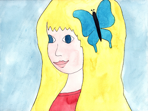 Daar was vlinder niet van gediend. Hij verhuisde naar haar hoofd.