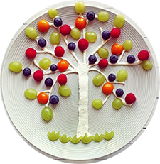 Schil de manderijn, leg 1 helft op het bord en leg de andere schijfjes zoals op het plaatje.