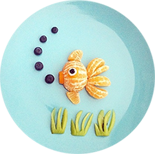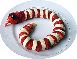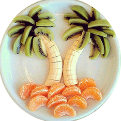 Sschil de kiwi en snijd ze in plakjes. Maak er inkepingen in zodat je waterplantjes krijgt.