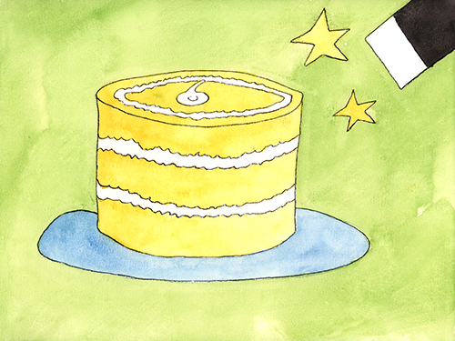 Tja, wat dan? Hij toverde zich een grote lekkere taart!